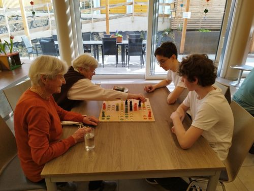 Bei gemeinsamen Gesellschaftsspielen, guten Gesprächen und viel Gelächter entstand schnell eine fröhliche und herzliche Stimmung. Unsere Tagesgäste genossen die Zeit mit den Jugendlichen sehr, und es war schön zu sehen, wie bereichernd das Miteinander von Jung und Alt sein kann.